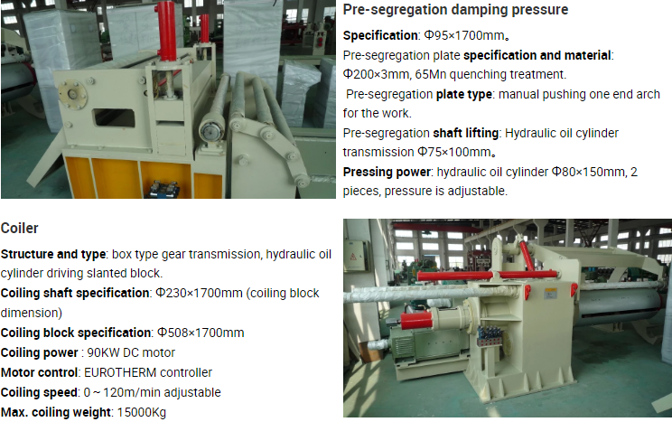 Material loading cart → Double loading uncoiling → Leading head, shoveling head, pitch roller feeding, end shearing machine → Deviation-correcting device → Slitting machine → Scrap institution → Loop → Pre-segregation, tension machine→ Coiler → Material unloading cart → Hydraulic control→ Electric control system